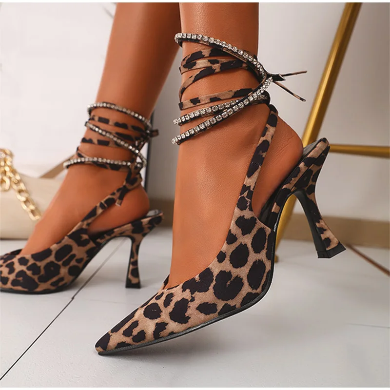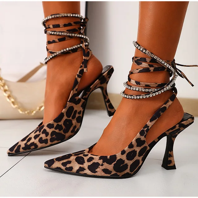 Sexy Heels Women Sandals Lace-up Pointed Toe Thin High Heels Slingback Lady Ankle Strap Party Shoes Female Mules New